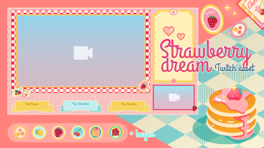 Cute stream Twitch asset "Strawberry Dream"
